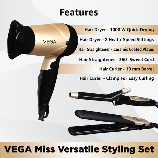 Vega Miss Versatile Styling Set - Hair Dryer, Straightener, and Curler