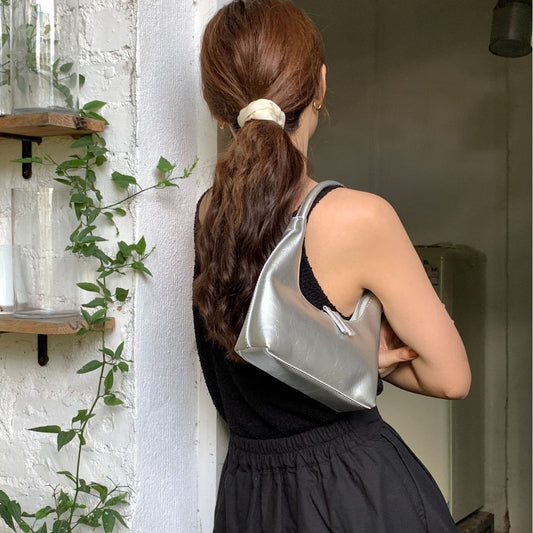 2025 French-Inspired Silver Texture Underarm Shoulder Bag